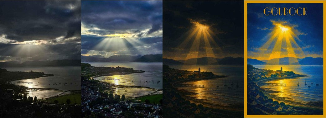 The starting point is always a photograph taken in Scotland by Stephen Henry. Observed, composed and captured with intent. From there, the image is carefully reinterpreted.